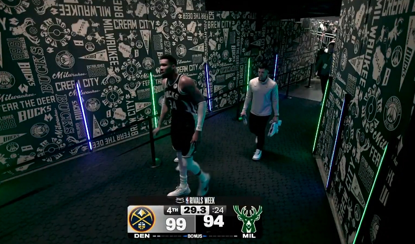 GIF-字母哥在球员通道走来走去!